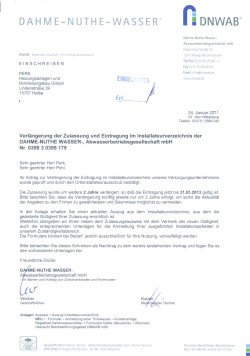 Zulassung und Eintragung im Installateurverzeichnis der DNWAB